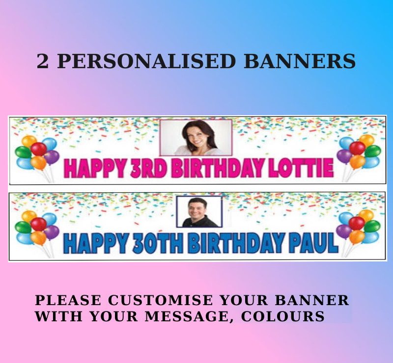 One of our most popular Banners. This is a photo banner with one picture placeholder , provided in pairs, have a coloured background. Suitable for Birthdays, Christenings and other set occasions.